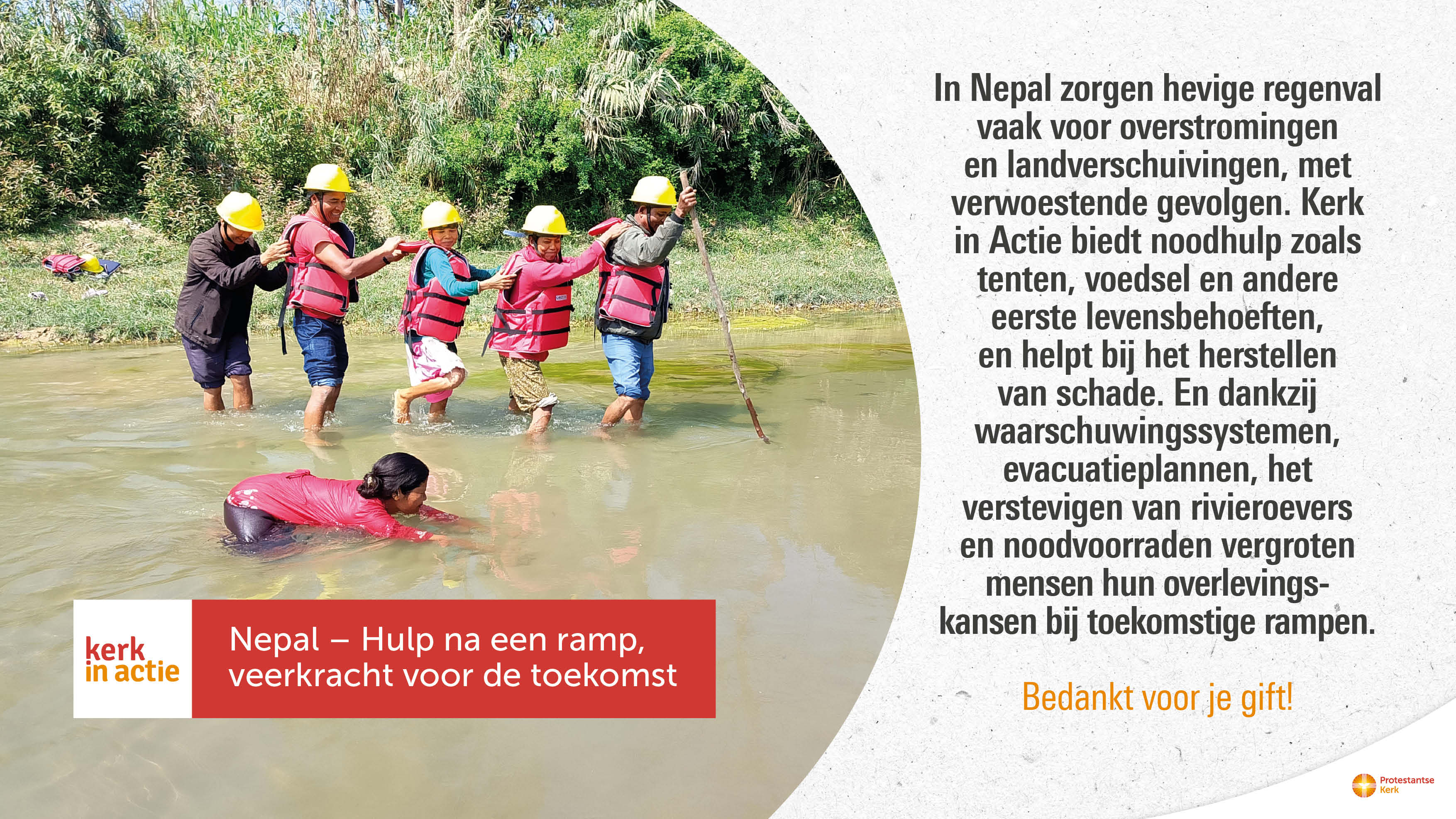 In Nepal zorgen hevige regenval regelmatig voor overstromingen en landverschuivingen, vaak met verwoestende gevolgen. Kerk in Actie biedt noodhulp na een overstroming, maar ondersteunt gemeenschappen ook om beter voorbereid te zijn op toekomstige rampen.