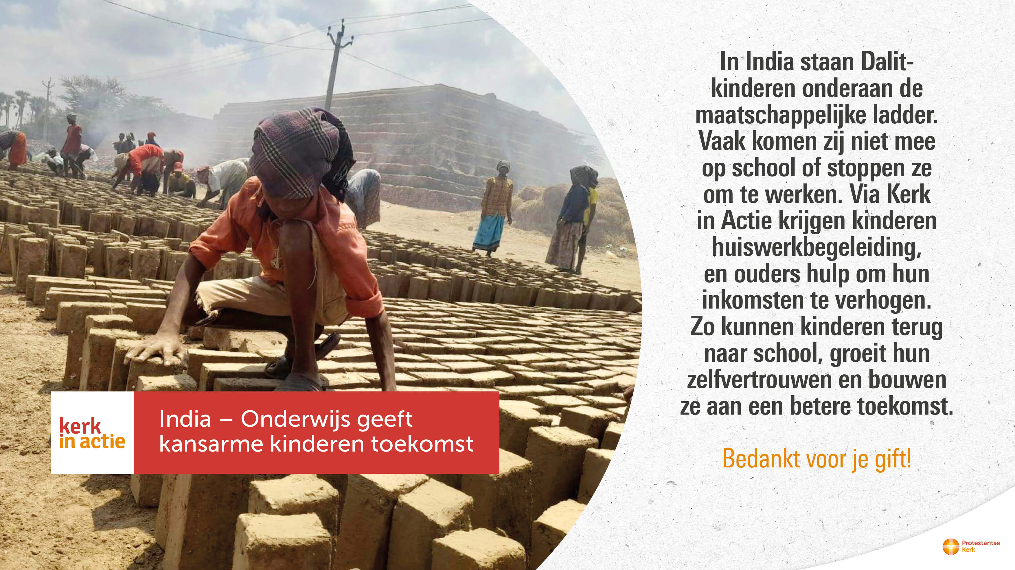 Met het programma werelddiaconaat ondersteunt Kerk in Actie Dalit kinderen. U kunt dit werk steunen door een bijdrage over te maken op IBAN-nummer NL89 ABNA 0457 457 457 t.n.v. Kerk in Actie te Utrecht, o.v.v. het projectnummer 'kinderen India' of doneer online. Hartelijk dank!